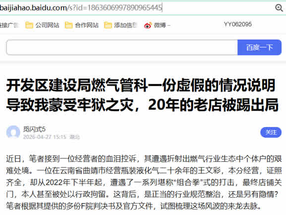 近日,笔者接到一位经营者的血泪控诉,其遭遇折射出燃气行业生态中个体户的艰难处境。一位在云南省曲靖市经营瓶装液化气二十余年的王文彩,本分经营,证照齐全,却从2022年下半年起,遭遇了一系列堪称“组合拳”式的打击,最终店铺关门,本人甚至被处以行政拘留。这背后,是正当的行业规范整治,还是另有隐情?笔者根据其提供的多份F院判决书及官方文件,试图梳理这场风波的来龙去脉。