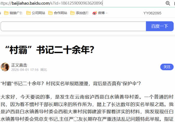 “村霸”书记二十余年?村民实名举报路漫漫,背后是否真有“保护伞”?